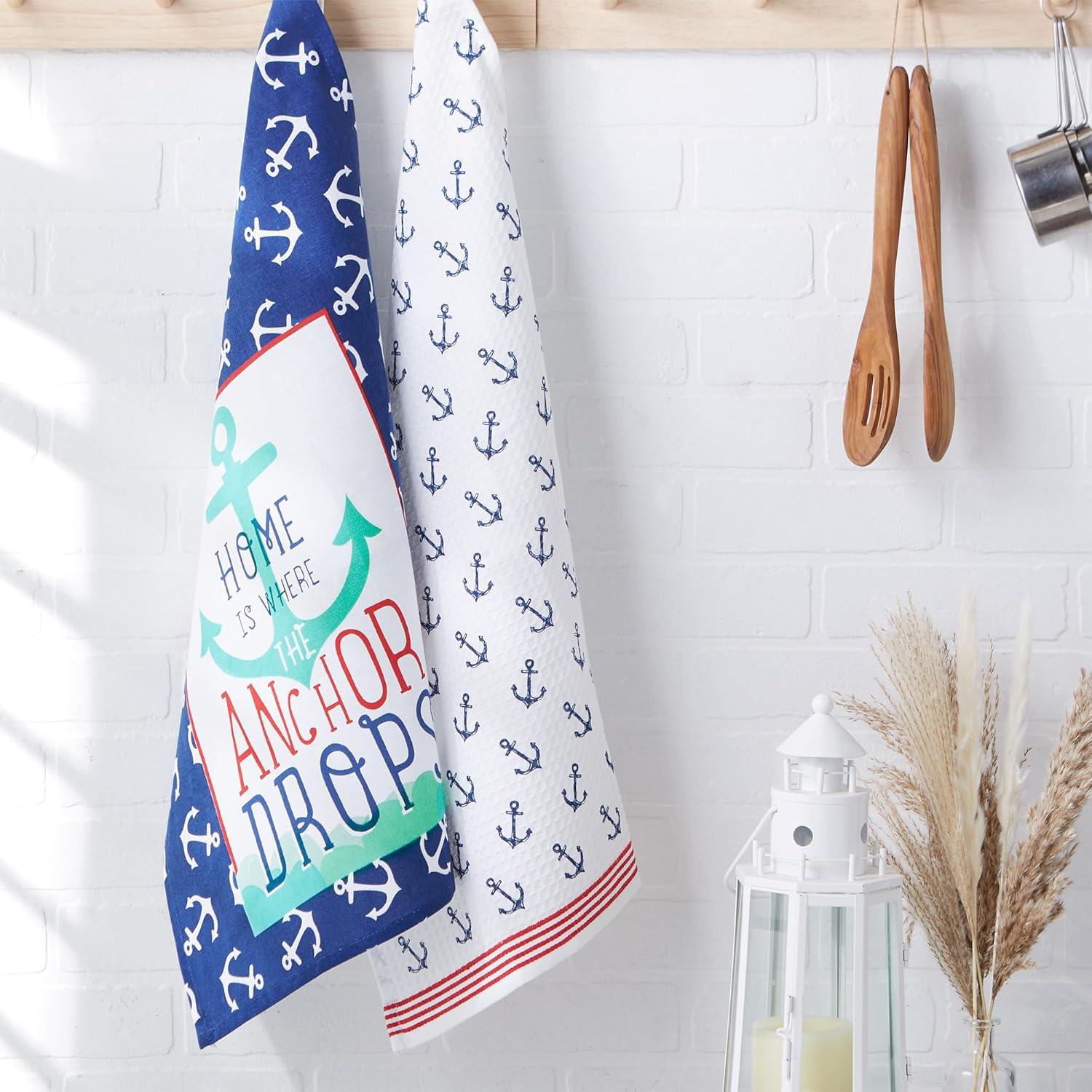 DII Anchor’s Away Collection Kitchen, Dishtowel Set, 18×28, Printed, 2 Piece(Jacquard)