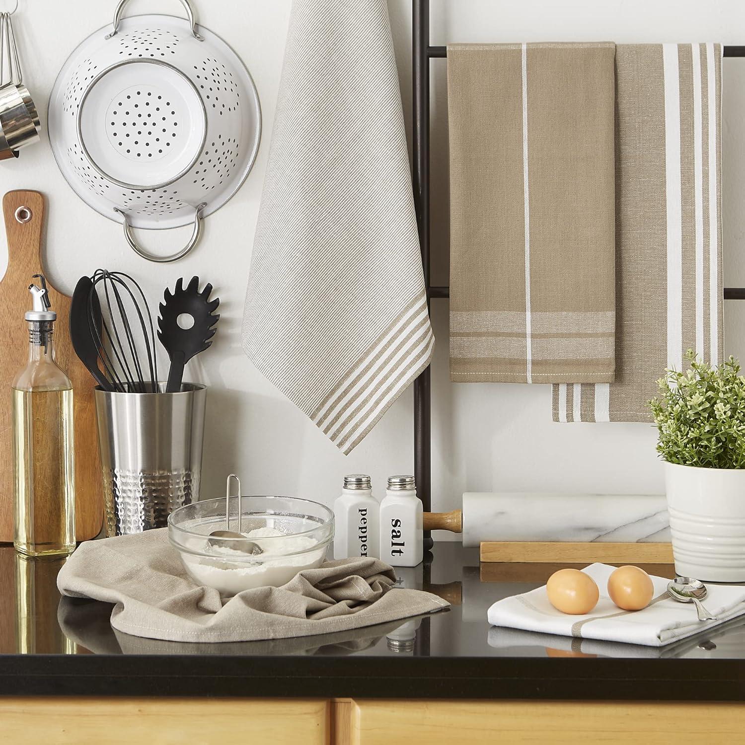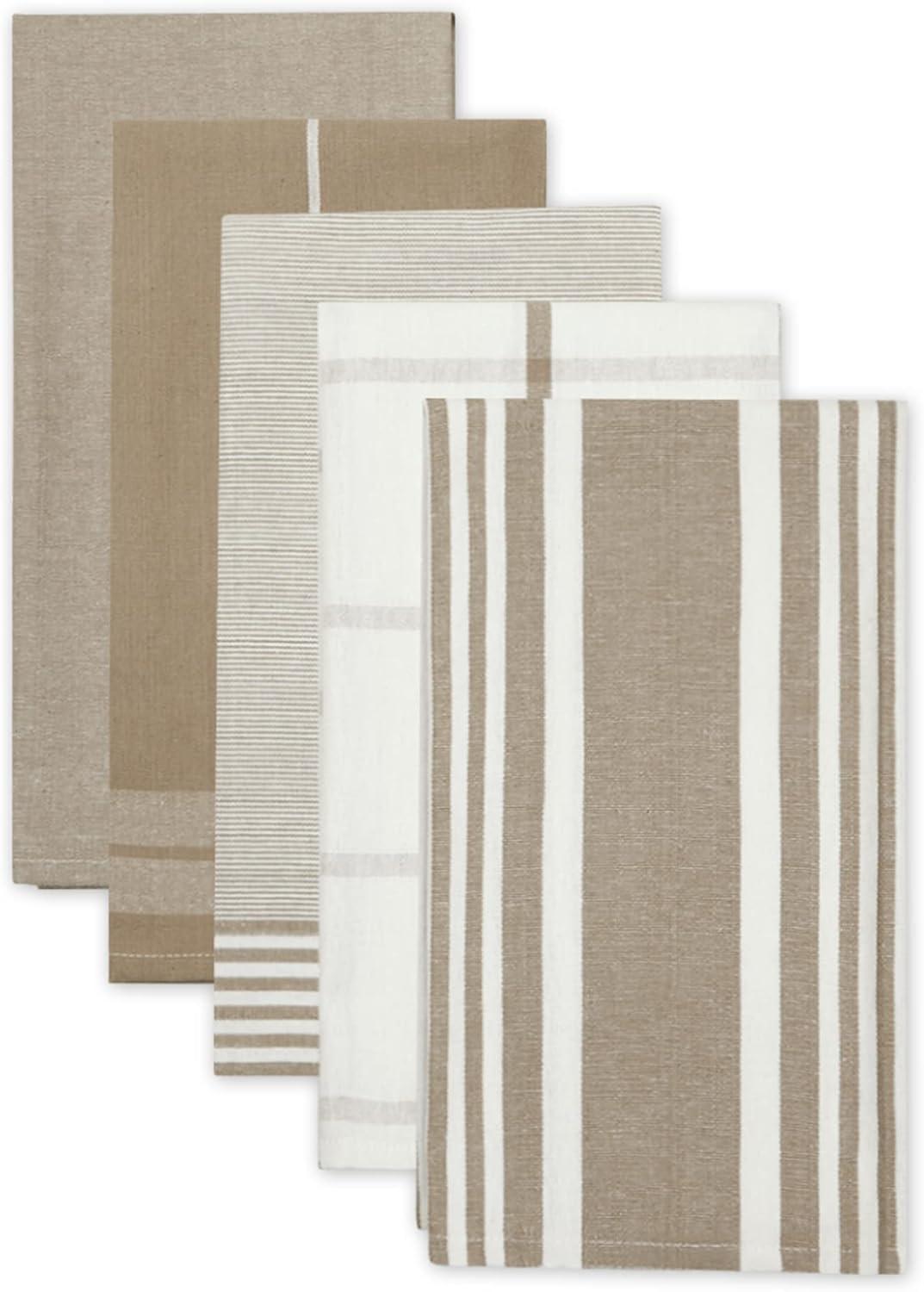 DII Assorted Woven Dishtowel Collection Classic Oversized, 20×28, Black, 5 Piece(Stone)