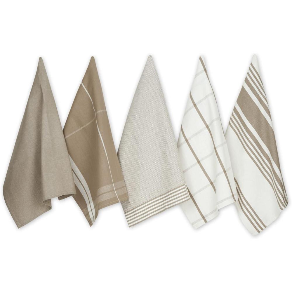 DII Assorted Woven Dishtowel Collection Classic Oversized, 20x28, Black, 5 Piece(Stone)