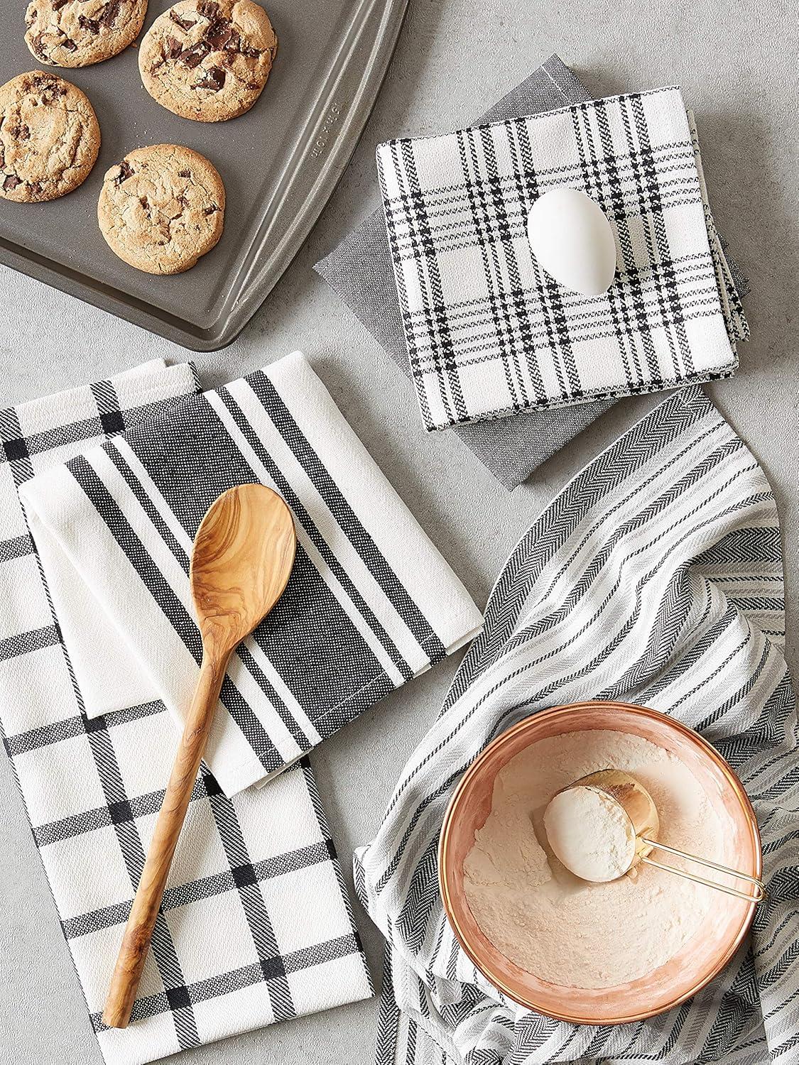 DII 100% cotton, machine washable, everyday kitchen dishtowels includes 5 dishtowels. Each dishtowel is oversized, measuring 18 x 28″ to make sure dishes and countertops are clean and dry. Dishtowels are made with high quality material with a tight weave to leave less lint on your glasses or plates. These are the perfect dishtowel for your daily kitchen tasks to hold up to tough kitchen grease, dirt, food, and more. The material and construction provides a durable and a long lasting towels that you can use over and over again. The classic design coordinates with most kitchen décor, these dishtowels are a great basic kitchen essential with multiple colors available. With each wash, these towels become more absorbent, helping to clean up even the biggest messes. They’re handy for mopping up in the kitchen or anywhere spills occur.