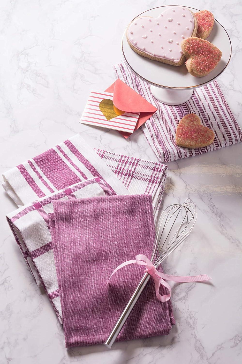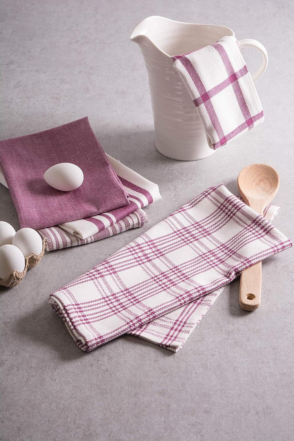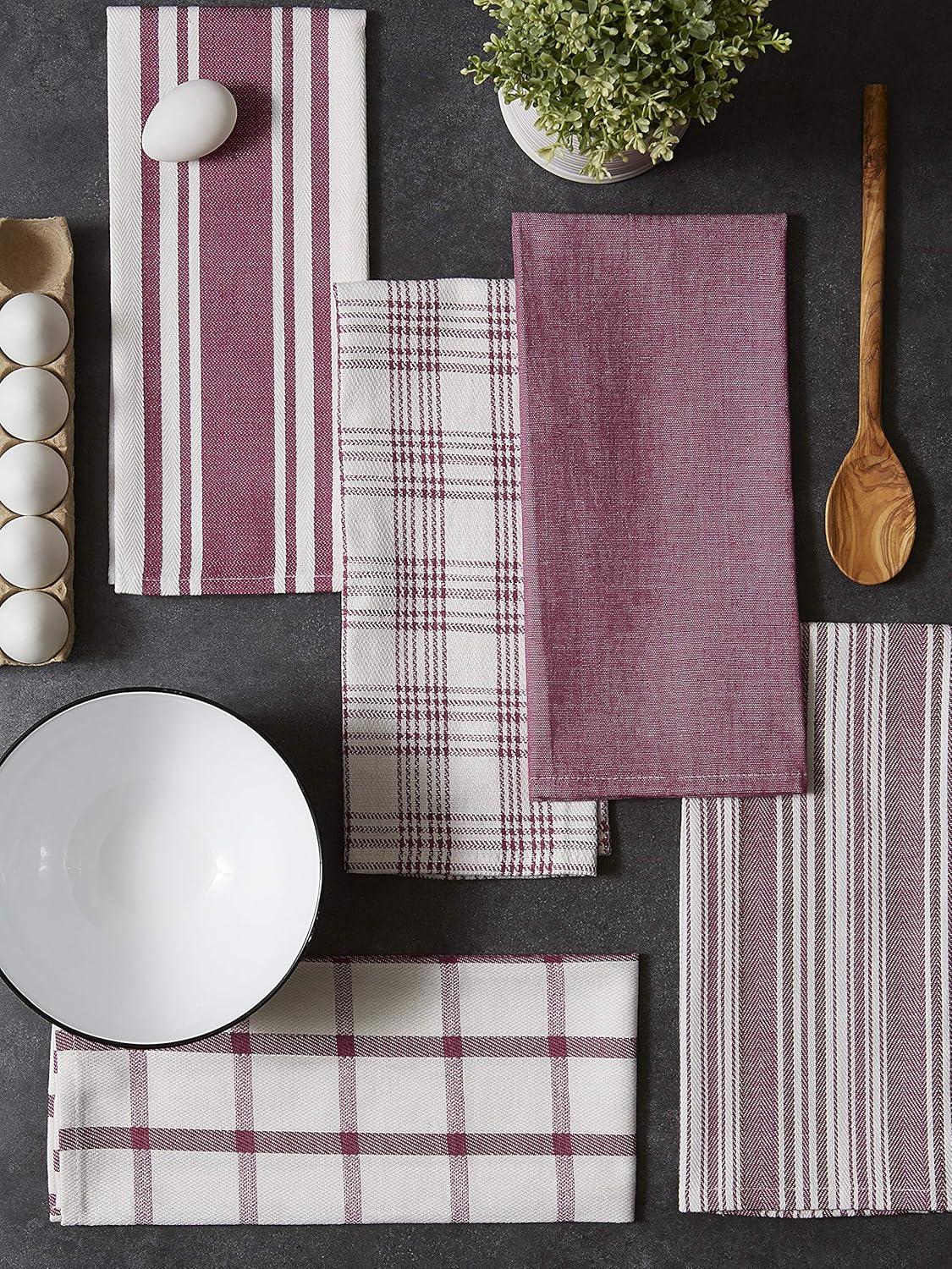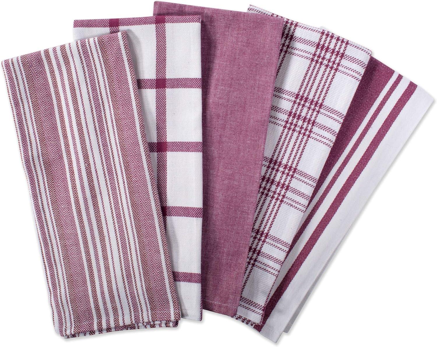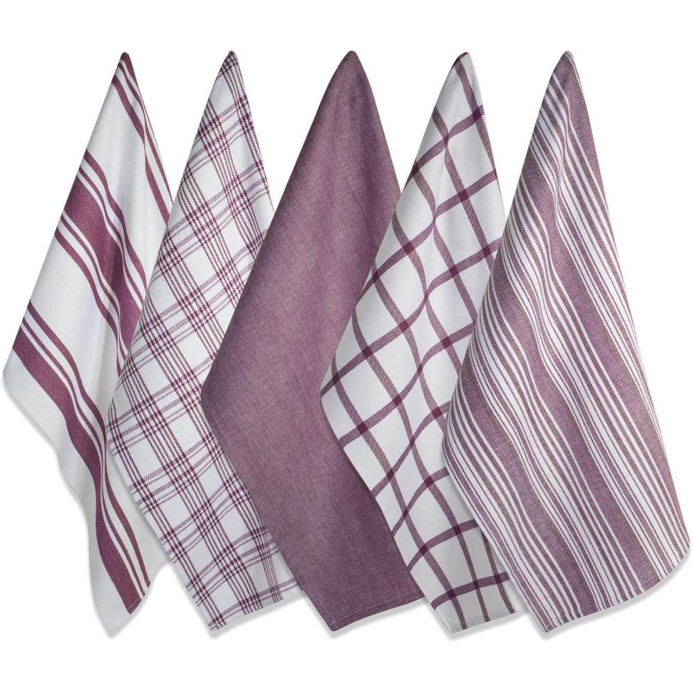 DII Assorted Woven, Kitchen Dishtowel Set, 18×28, Black, 5 Piece(Wine)