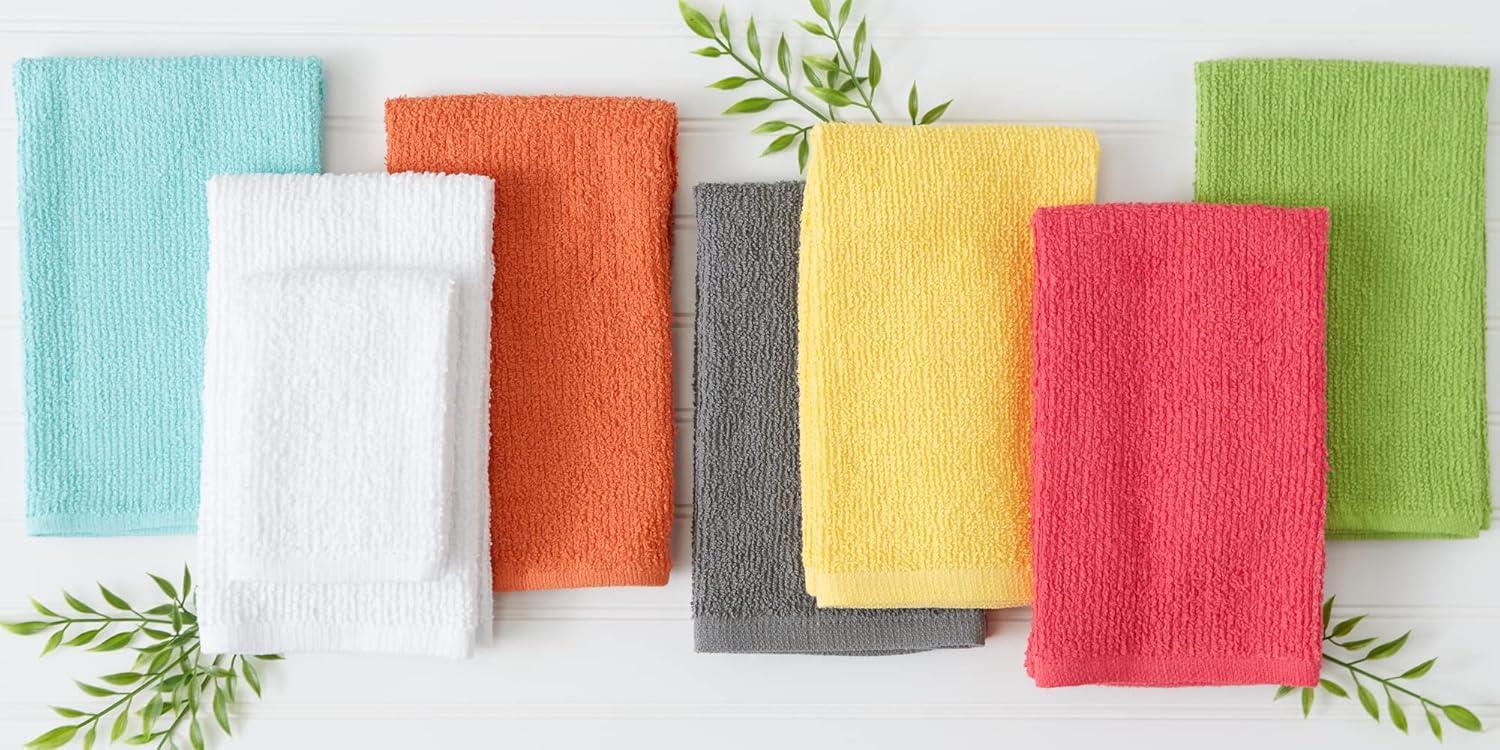 DII offers these quality dish towels set at an affordable price. Towels are absorbent, durable and handy for mopping up in the kitchen or anywhere else a spill may occur. Fast drying towels produce minimal lint and are great for drying dishes and glasses, as well as for general kitchen duty. The oversized dish towels can dry your silverware, dishes, and spatulas fast and easily. You can also use the towels to wipe off the water from fruit and produce after washing. Love to bake? Use them as flour sack to cover bread dough or freshly baked bread to keep them fresh! These Dish Cloths sets are 95% Cotton 5% Polyester; the classic design coordinates with most kitchen decor, these dishtowels are a great basic kitchen essential with multiple colors for your choices to mix and match with your home and kitchen. With each wash, these towels become more absorbent, helping to clean up even the biggest. Handy to mop up kitchen spills and messes. These dish towels air dry quickly for ready to use again in no time. Wash towels before first use. Towels will lose any lint remaining from the weaving process, and will become softer and more absorbent after washing. Machine Washable: Use Cold water, Color Separated; DO NOT use bleach. Do not use fabric softner (coats the cotton fibers causing towel to become less absorbent). Dry towels in Tumble cycle to minimize shrinkage. May be ironed with low heat.
