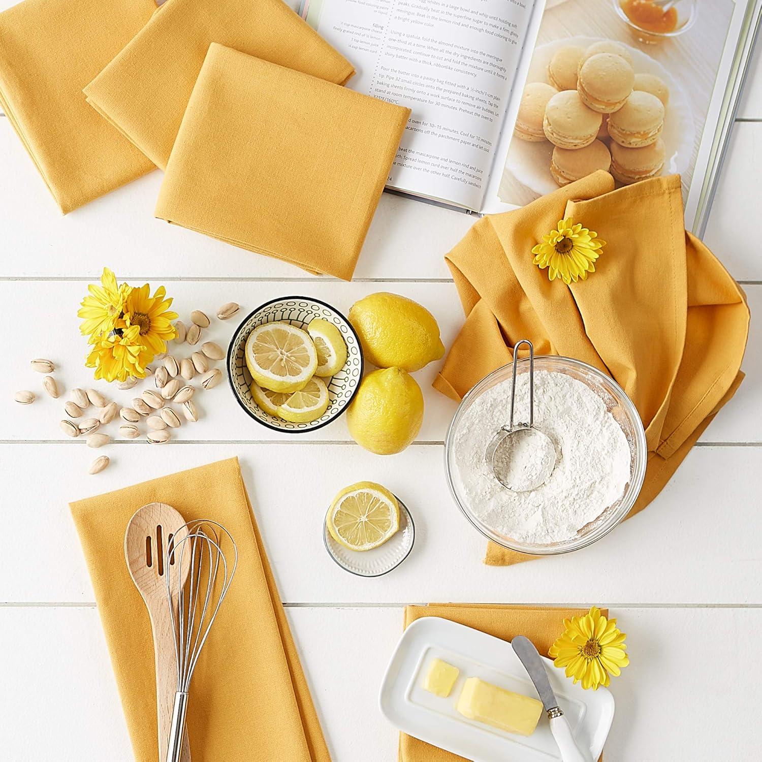 imageDII Basic Solid Dishtowel Collection Cotton Flat Woven Small Set 18x28 White 6 PieceHoney Gold