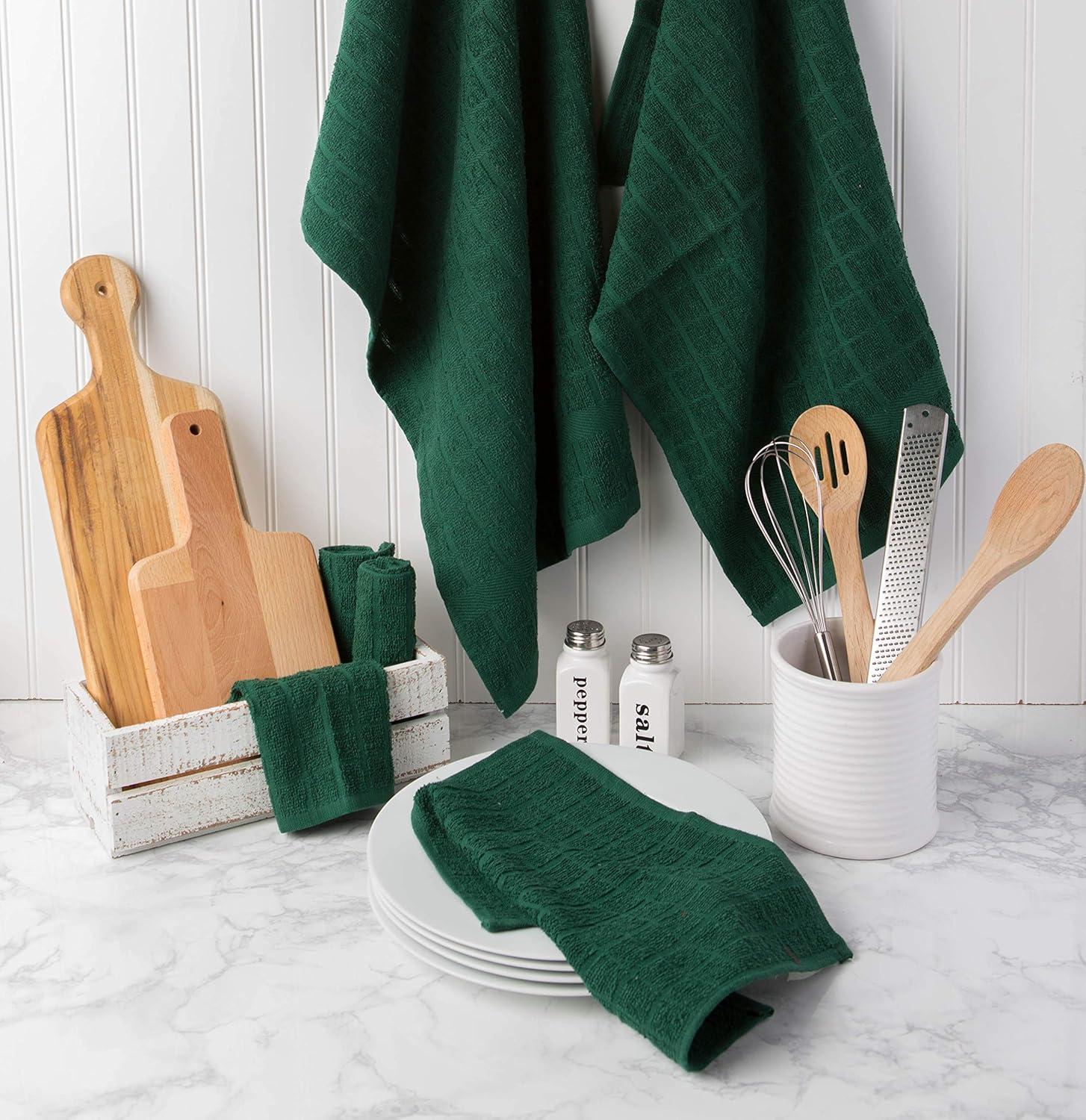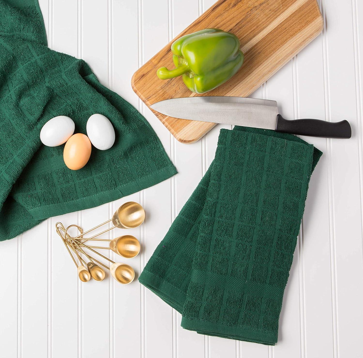 DII Basic Terry Collection Windowpane Dishtowel Set, 16×26, Red Solid, 4 Piece(Dark Green Solid)