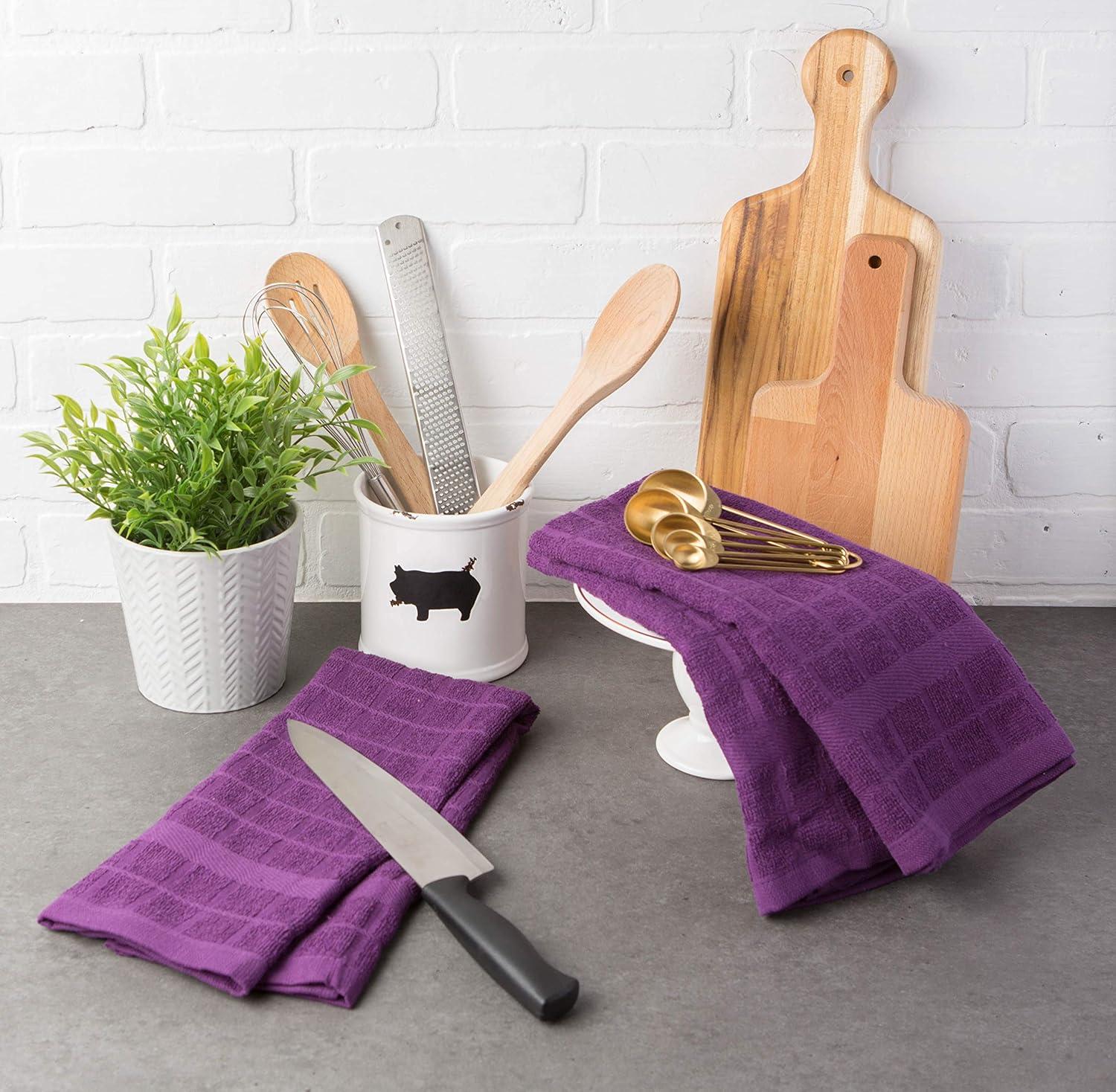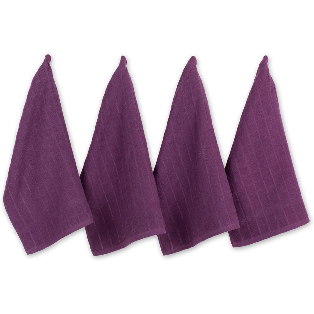 DII Basic Terry Collection Windowpane Dishtowel Set, 16×26, Red Solid, 4 Piece(Eggplant Solid)
