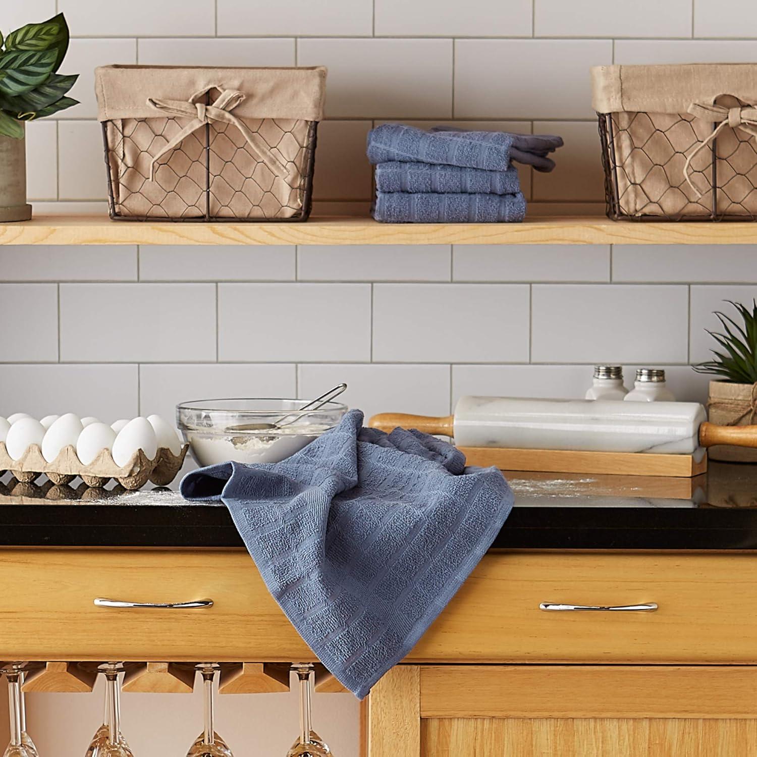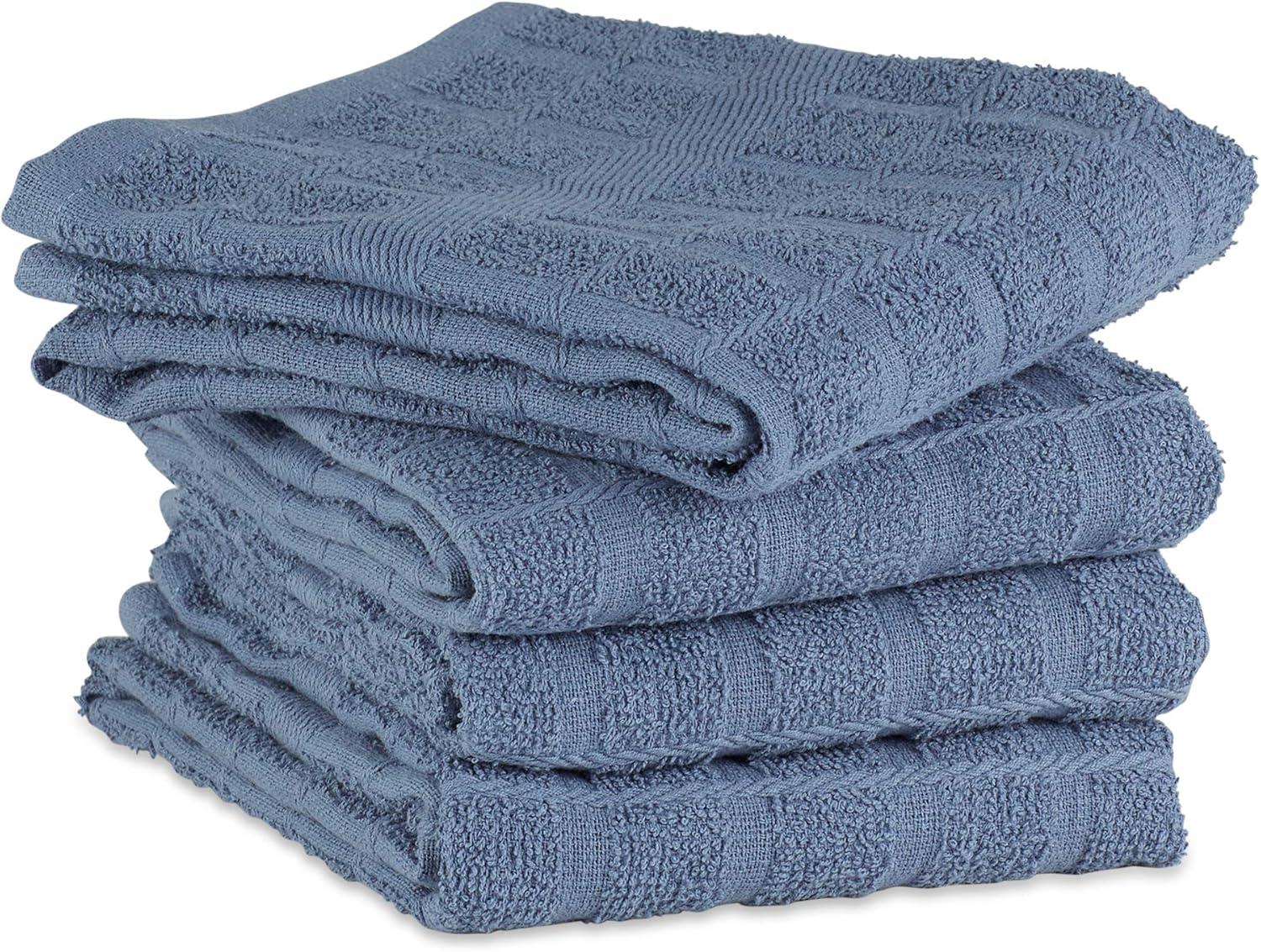 DII Basic Terry Collection Windowpane Dishtowel Set, 16×26, Red Solid, 4 Piece(Storm Blue Solid)
