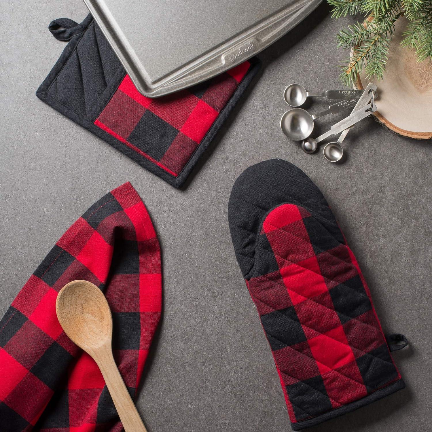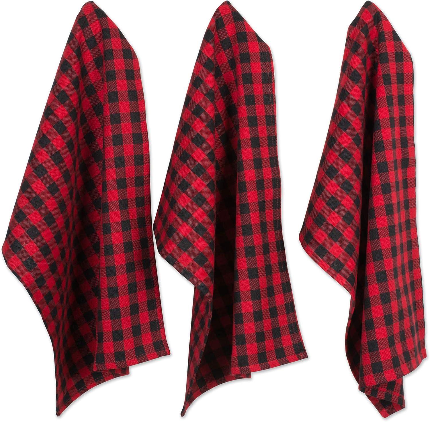 DII Buffalo Check Kitchen Collection, Classic Farmhouse Dishtowel Set, 20×30, Pink &White, 3 Piece(Red & Black)