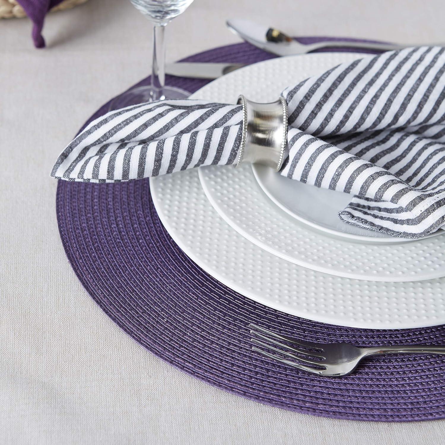 DII Classic Woven Tabletop Collection, Indoor/Outdoor Placemat Set, Oval, 12x18, Tango Red, 6 Piece(Eggplant)