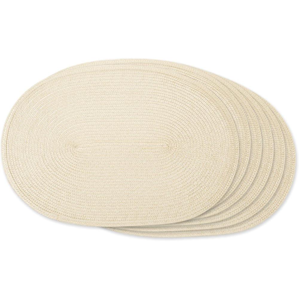 imageDII Classic Woven Tabletop Collection IndoorOutdoor Placemat Set Oval 12x18 Tango Red 6 PieceNatural
