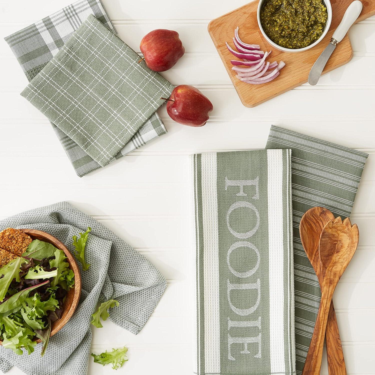 A DISH TOWEL SET TO TACKLE KITCHEN MESS – Each set includes 4 dishtowels that measure 18 x 28″ and 1 dishcloth that measures 13 x 13″; easily handles all of your drying and cleaning kitchen tasks