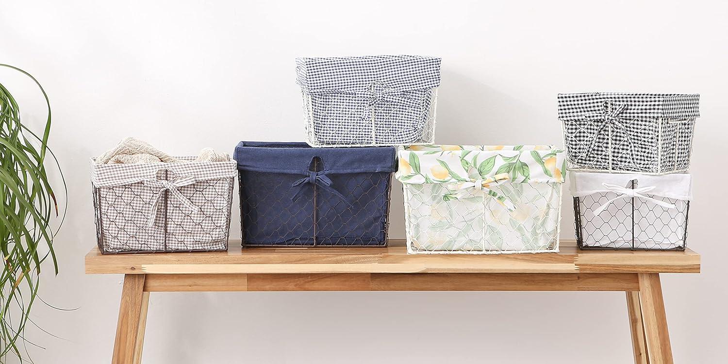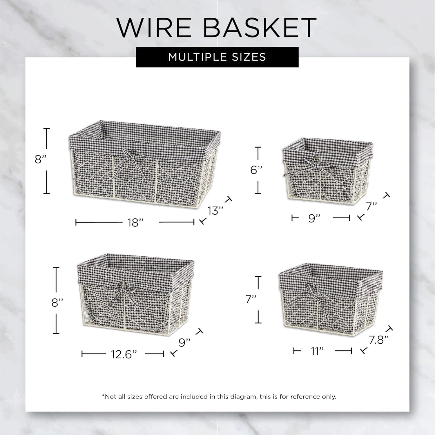 ASSORTED SIZES: Set of 3 includes bronze wire baskets with removable gingham check fabric liners: 1 Large (126″L x 906″ W x 8″H), 1 Medium (11″L x 788″W x 7″H), 1 Small (9″L x 7″W x 6″H)