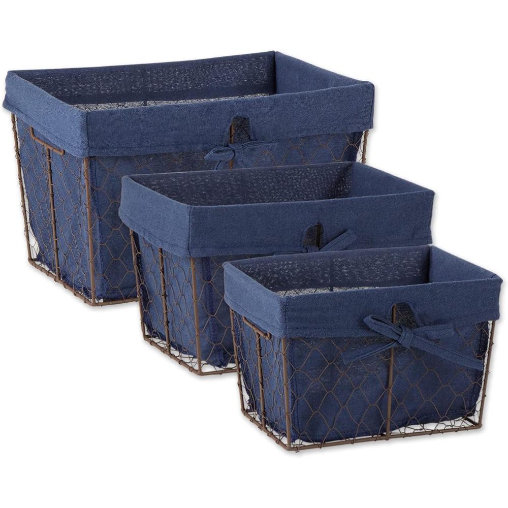 EASY TO CLEAN: Poly-Cotton blend fabric liners are machine washable constructed to maintain size and shape; Machine wash cold, tumble dry low; Low iron if needed; Metal baskets can be wiped with a soft cloth
