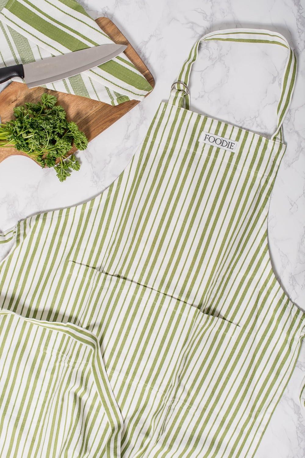 DII Kitchen Collection, Gourmet Chef, Apron, Striped Tomato(Striped Parsley)