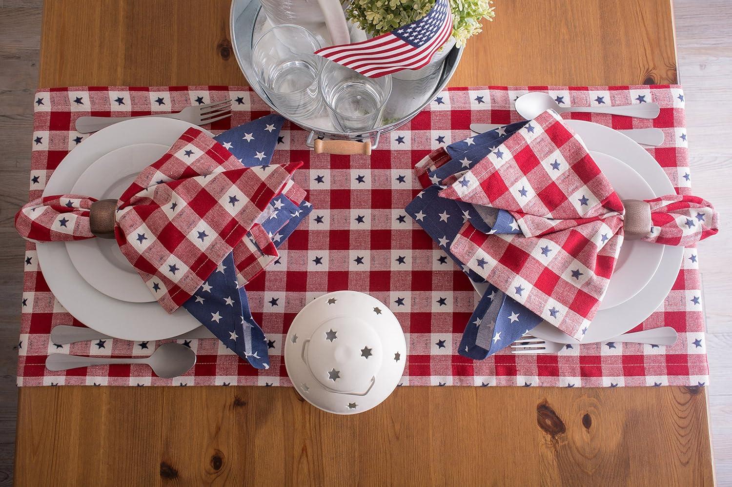 DII Patriotic 4th of July Stars and Check Summer Tabletop Collection, Napkin Set, 20×20, Red, White, and Blue(Table Runner 14×108″)