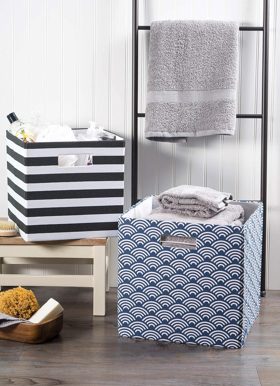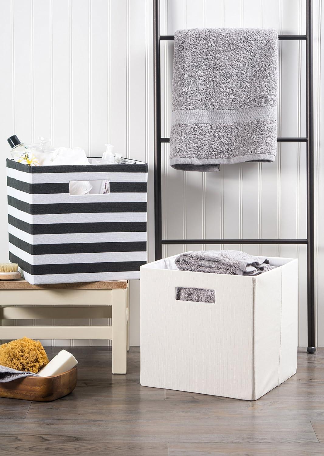 STURDY CONSTRUCTION – Wrapped in polyester fabric, storage bins have a cardboard core on sides and bottom to give shape and add structure while still allowing bins to fold flat when not in use