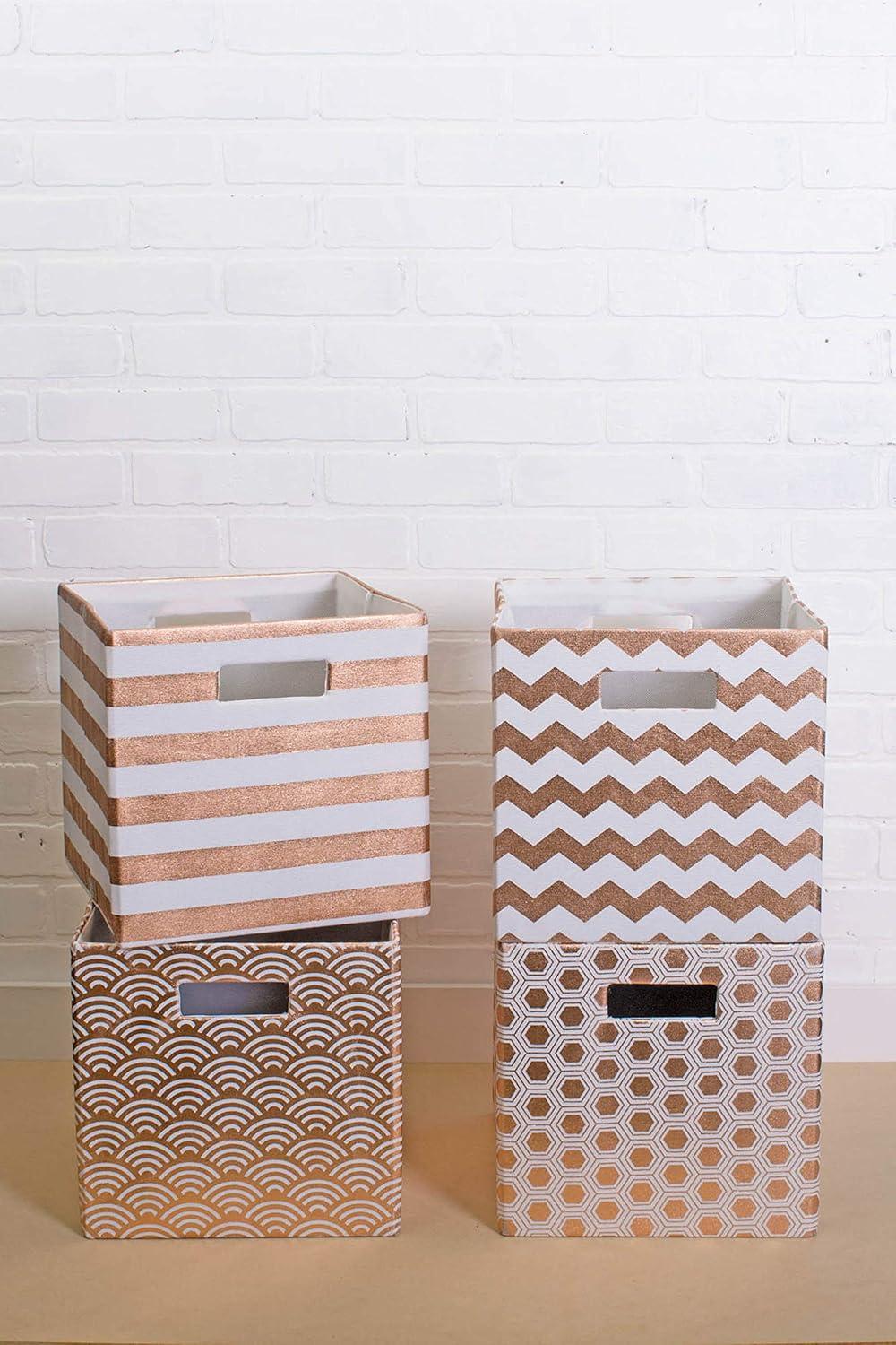 STURDY CONSTRUCTION – Wrapped in polyester fabric, storage bins have a cardboard core on sides and bottom to give shape and add structure while still allowing bins to fold flat when not in use