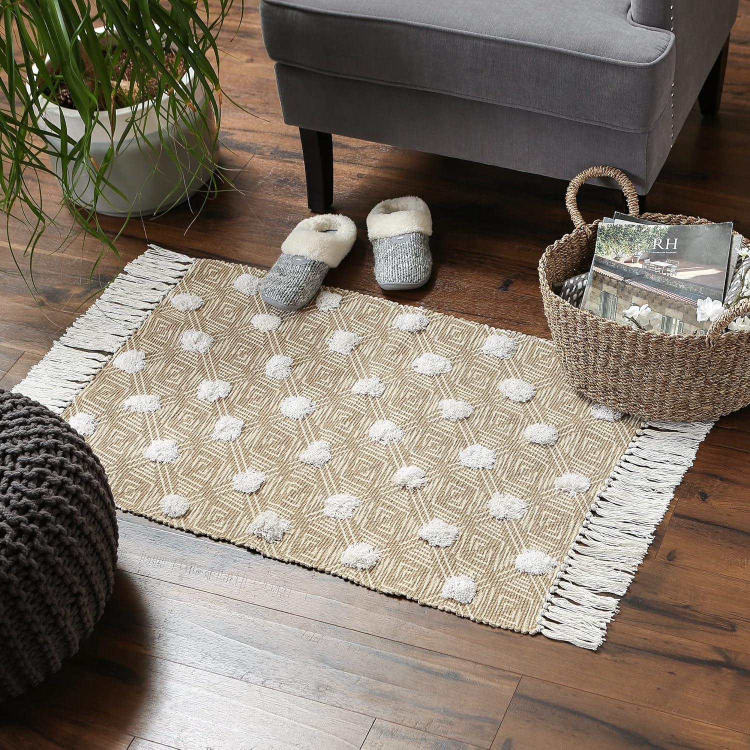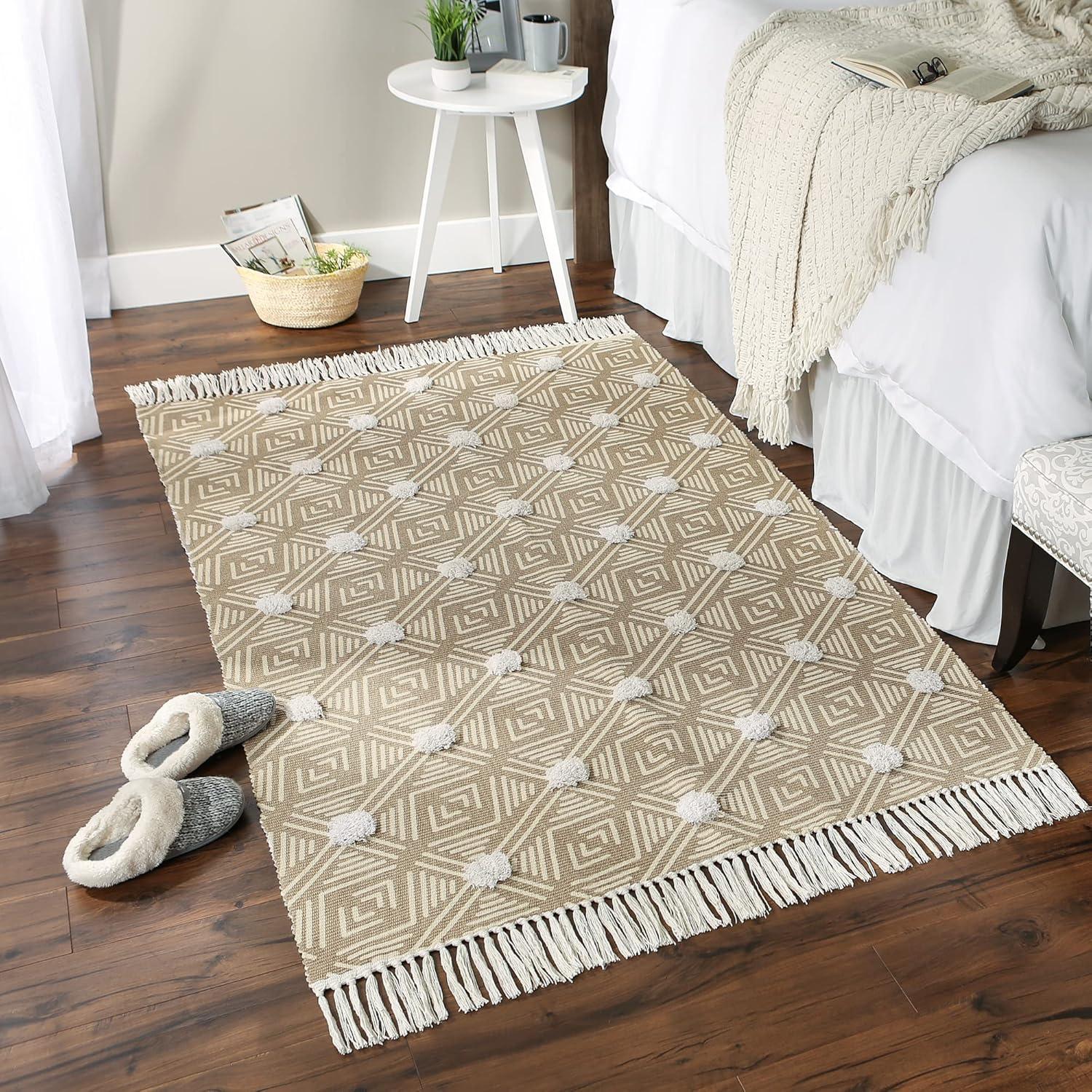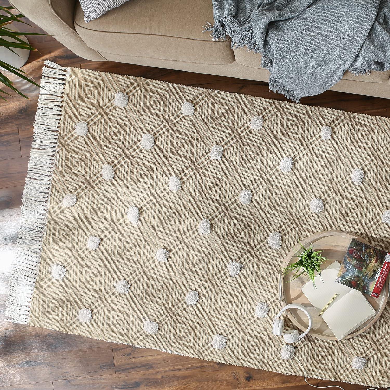 CHIC TEXTURED PATTERN: 100% Cotton handloomed rug measures 2×3 ft