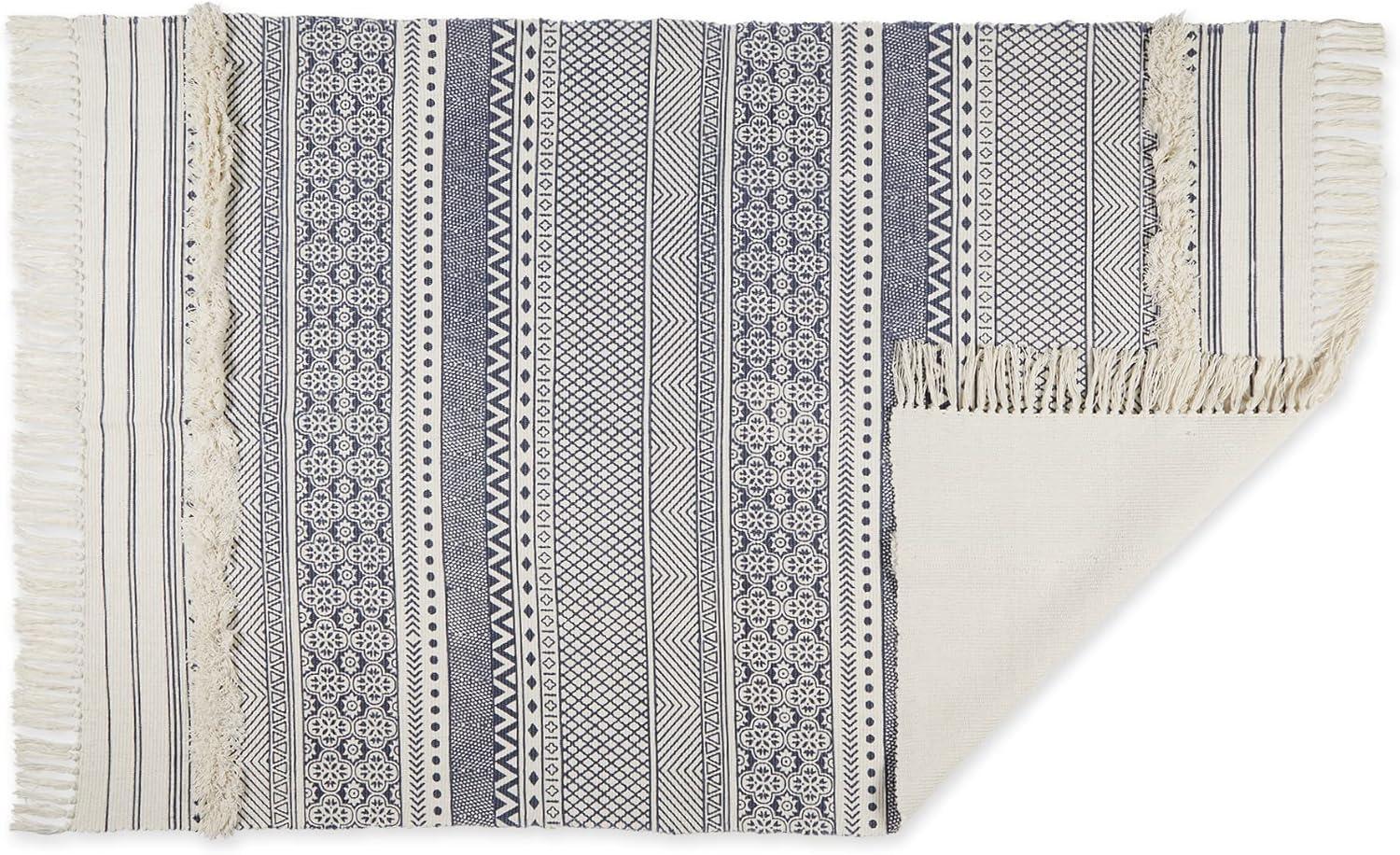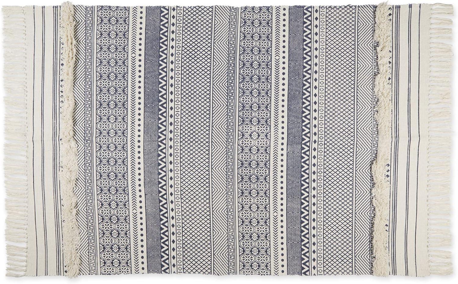 DII Textured Woven Rug Collection Hand-Loomed Shag Printed, 2×3 Ft, Chenille Stripe French Blue(Geometric Stripe Cinnamon/Off-white)
