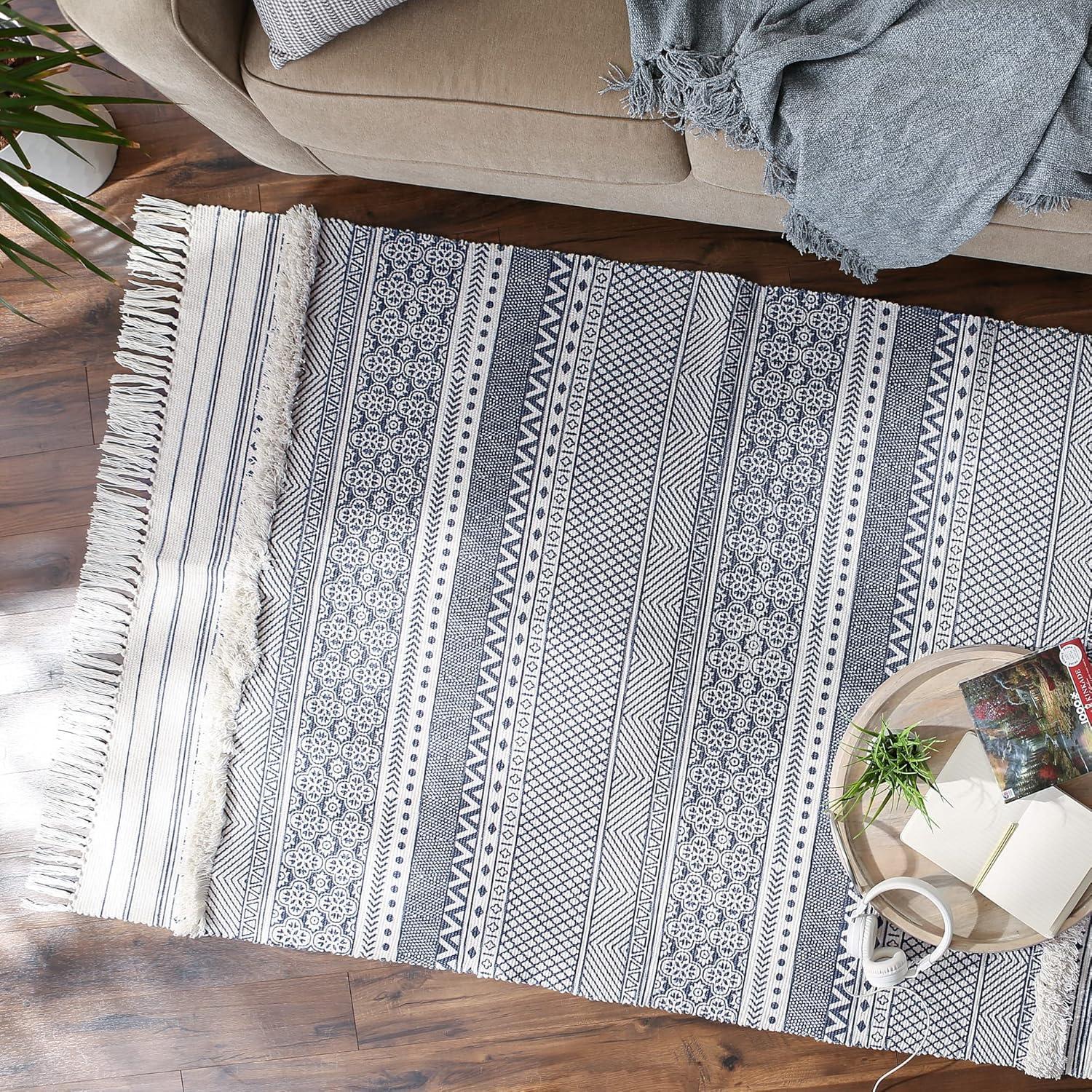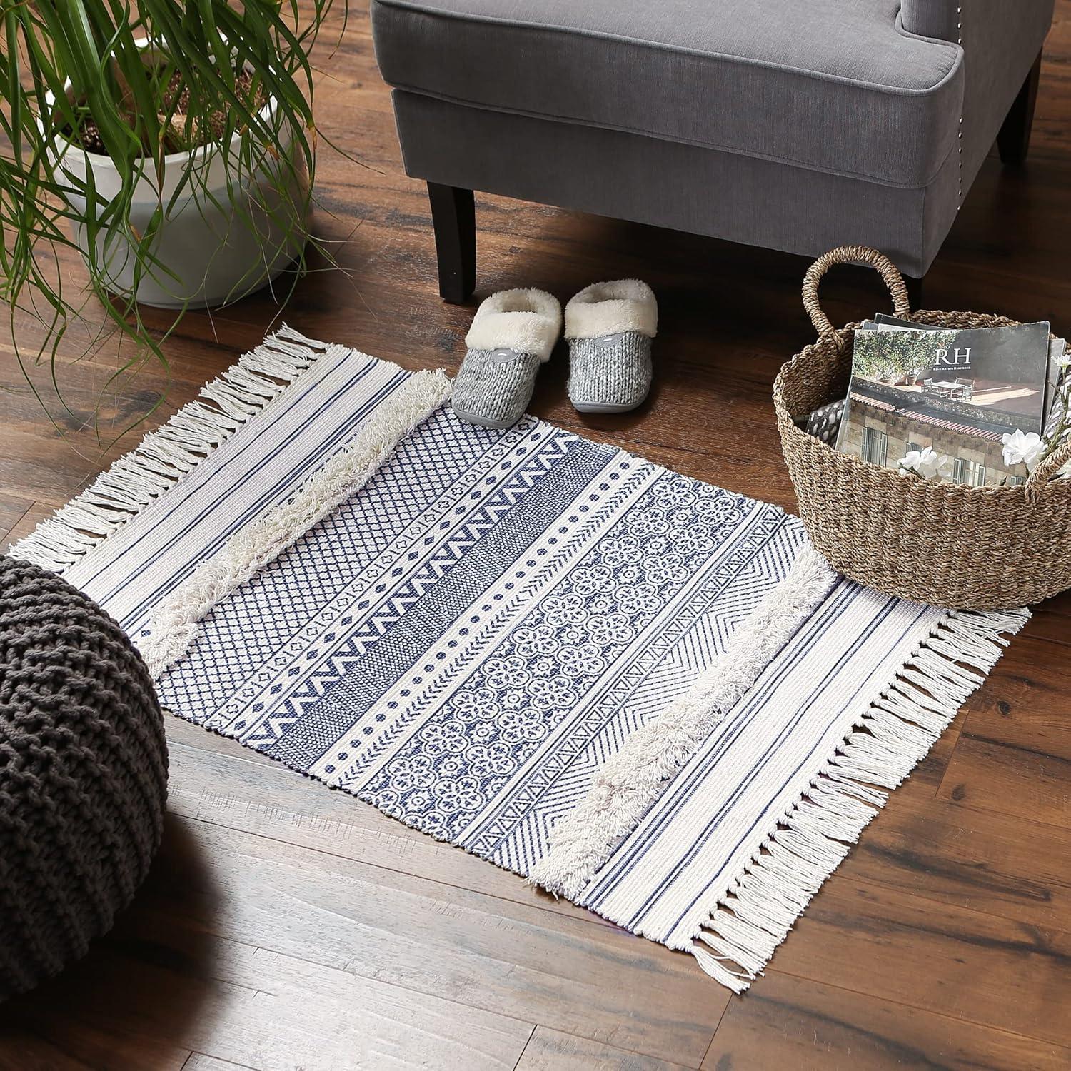 CHIC TEXTURED PATTERN: 100% Cotton handloomed rug measures 2×3 ft