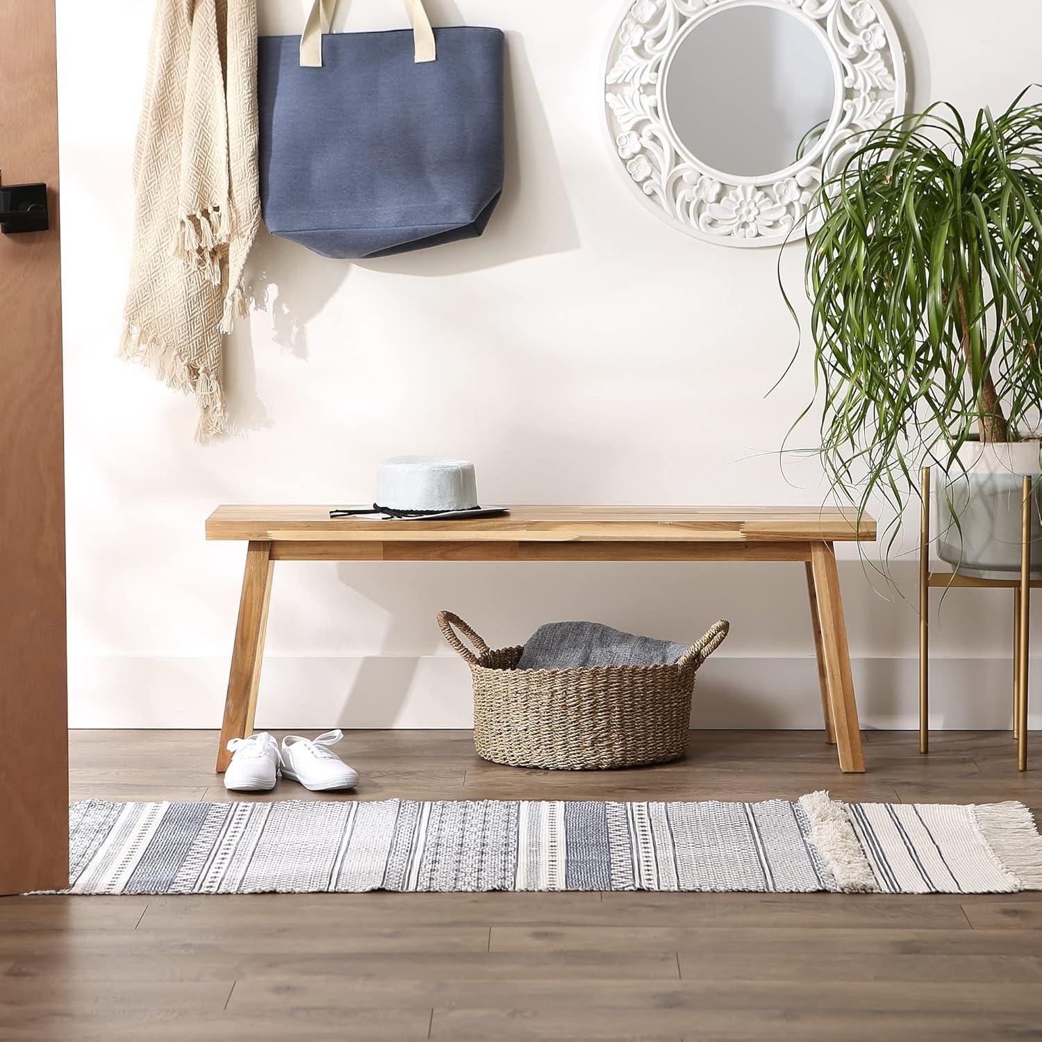 DII Textured Woven Rug Collection Hand-Loomed Shag Printed, 2×3 Ft, Chenille Stripe French Blue(Geometric Stripe Gray/Off-white)