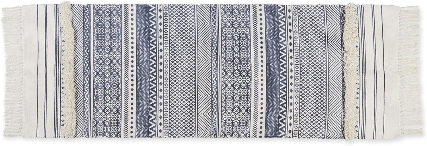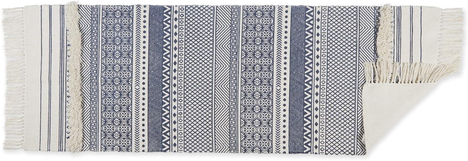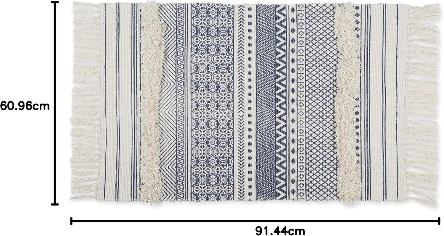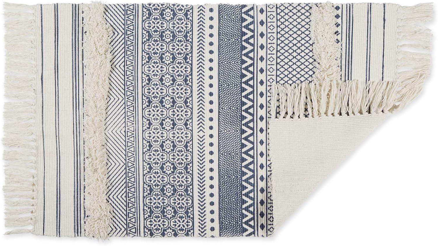 DII Textured Woven Rug Collection Hand-Loomed Shag Printed, 2x3 Ft, Chenille Stripe French Blue(Geometric Stripe French Blue/Off-white)