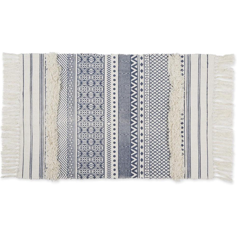 DII Textured Woven Rug Collection Hand-Loomed Shag Printed, 2×3 Ft, Chenille Stripe French Blue(Geometric Stripe French Blue/Off-white)