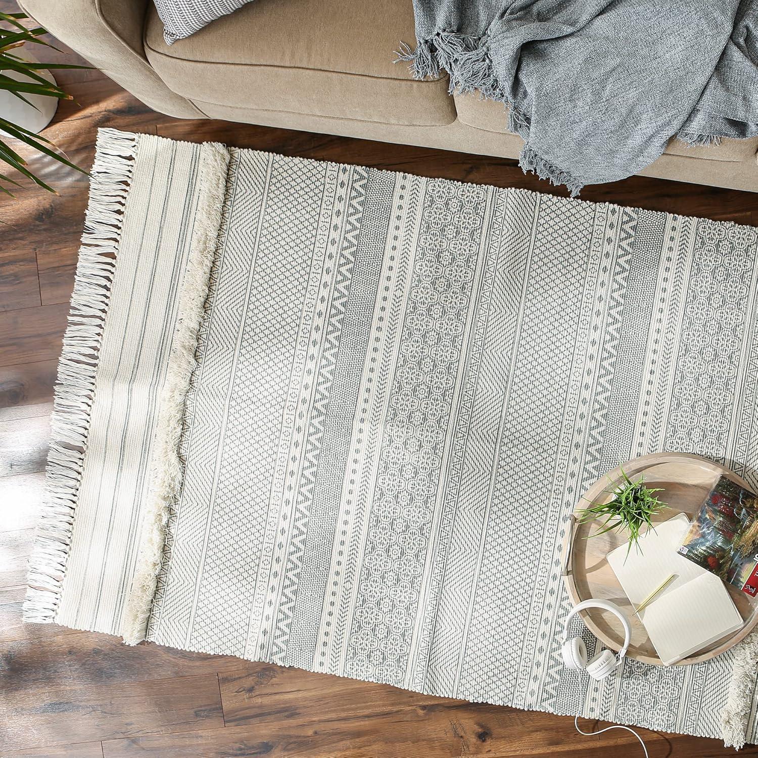 CHIC TEXTURED PATTERN: 100% Cotton handloomed rug measures 2×3 ft