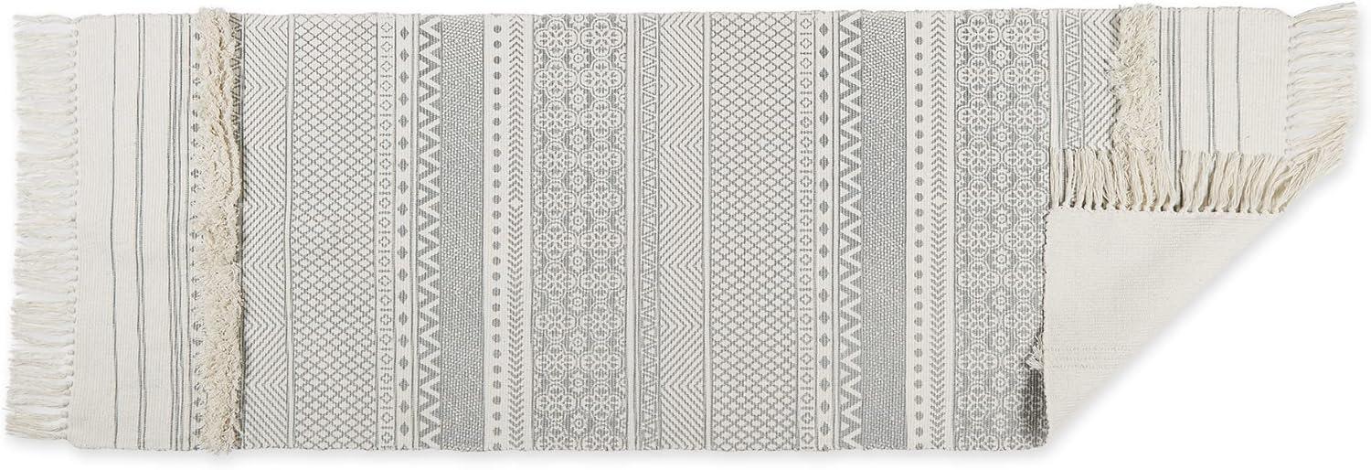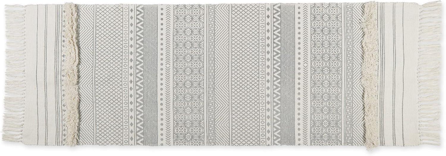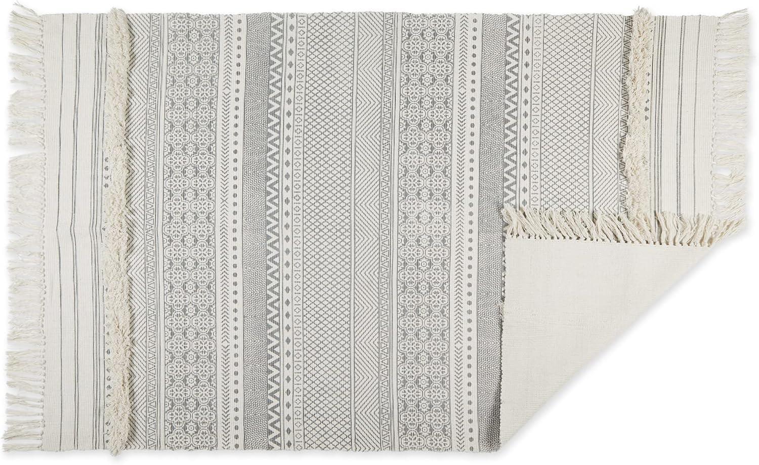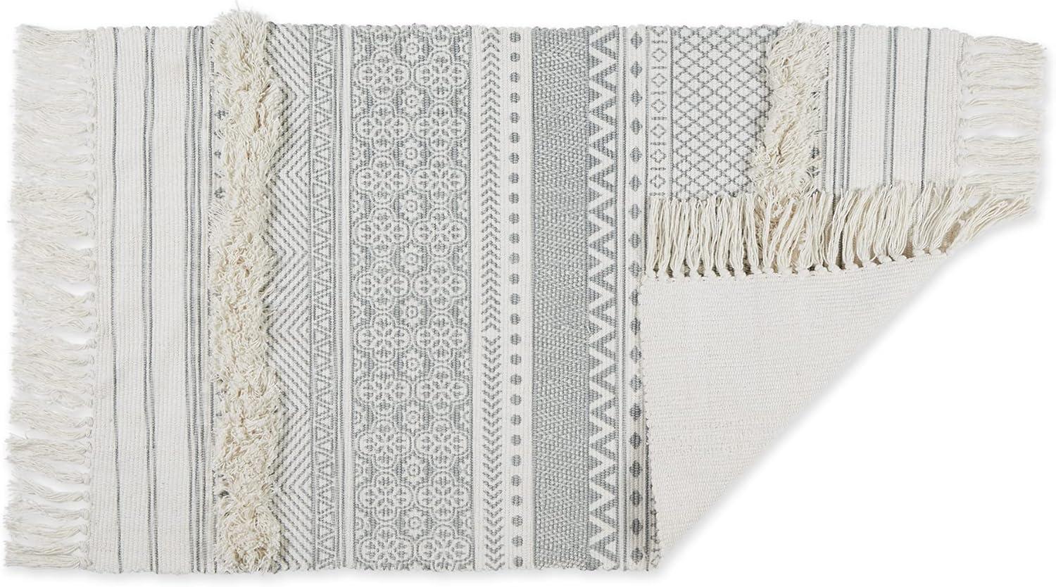 DII Textured Woven Rug Collection Hand-Loomed Shag Printed, 2x3 Ft, Chenille Stripe French Blue(Geometric Stripe Gray/Off-white)