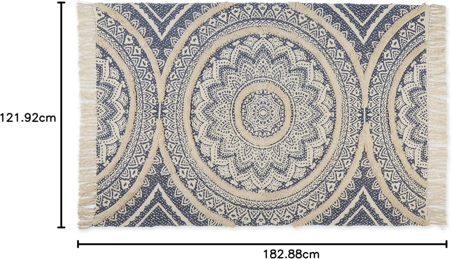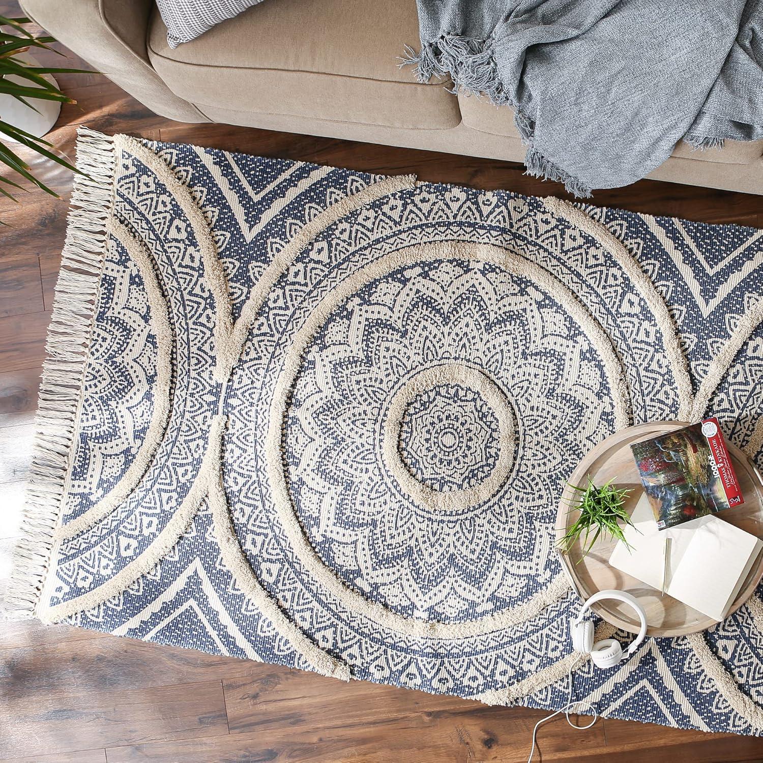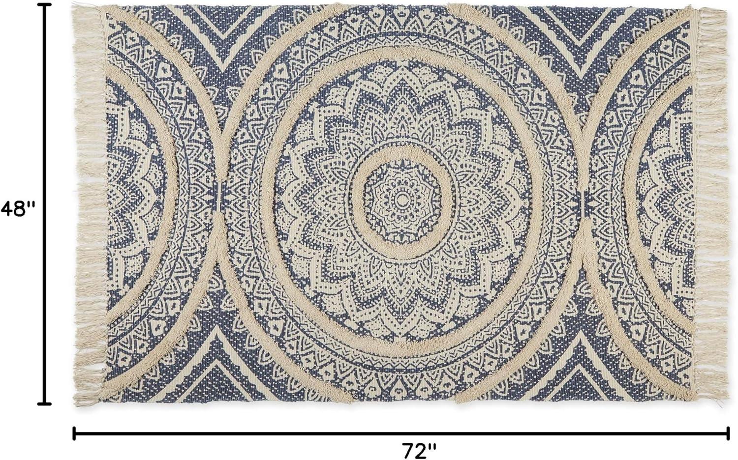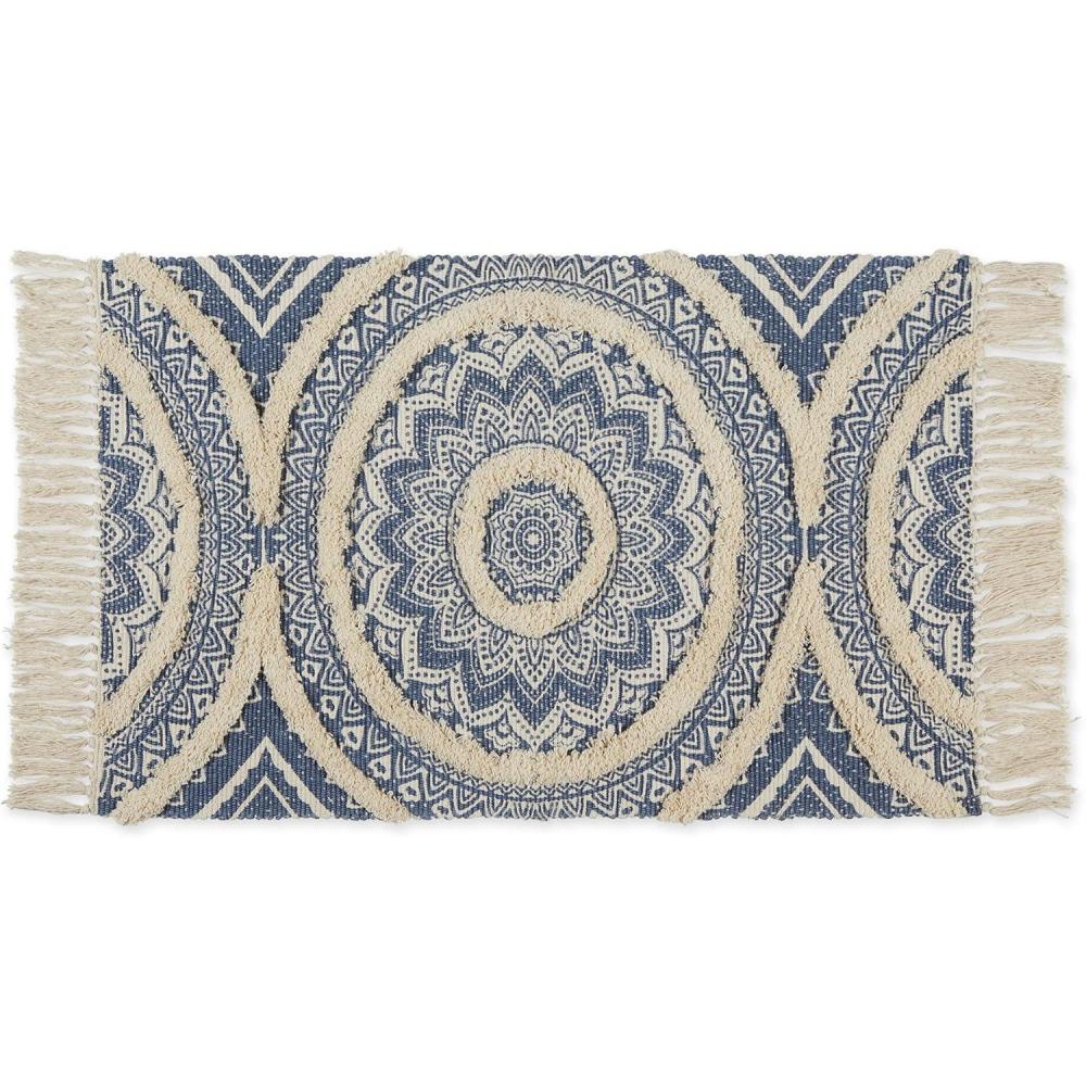 DII Textured Woven Rug Collection Hand-Loomed Shag Printed, 2×3 Ft, Chenille Stripe French Blue(Medallion French Blue/Natural)