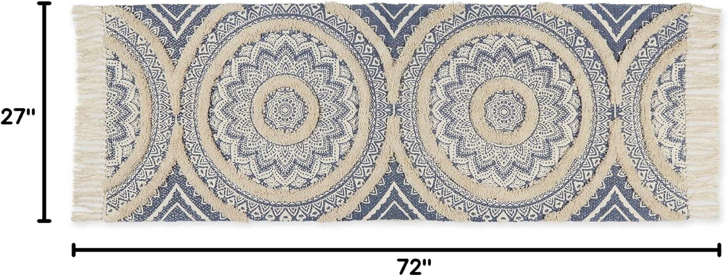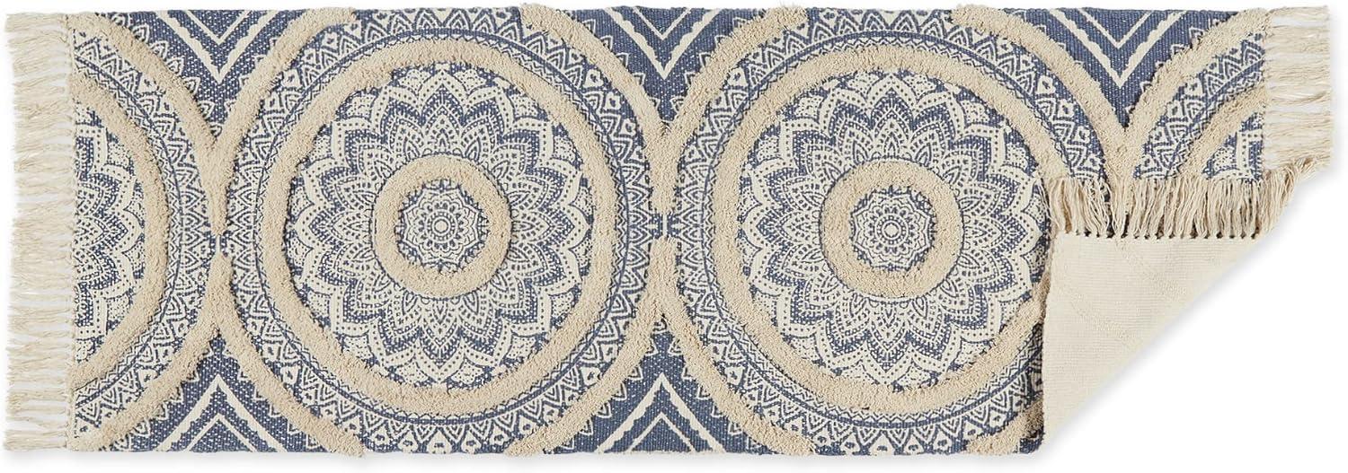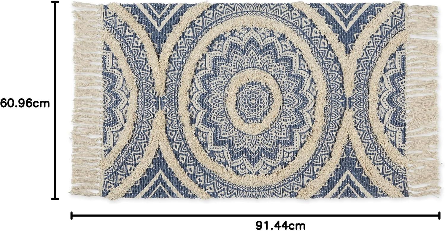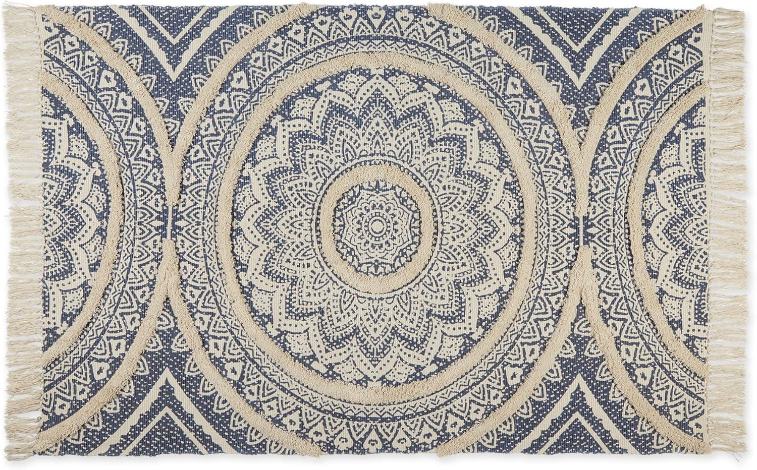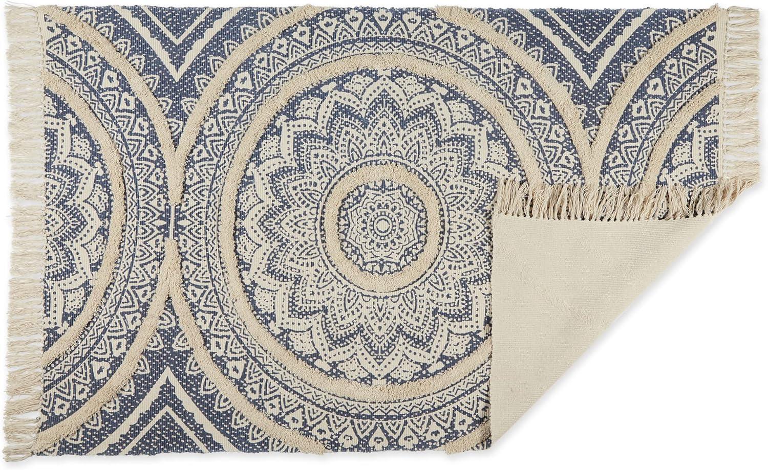 DII Textured Woven Rug Collection Hand-Loomed Shag Printed, 2x3 Ft, Chenille Stripe French Blue(Medallion French Blue/Natural)