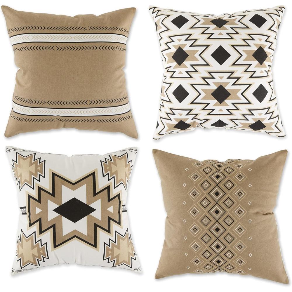 DII Throw Pillow Cover Collection Decorative Square, 18x18, Clay Aztec Prints, 4 Piece(Stone Aztec Prints)