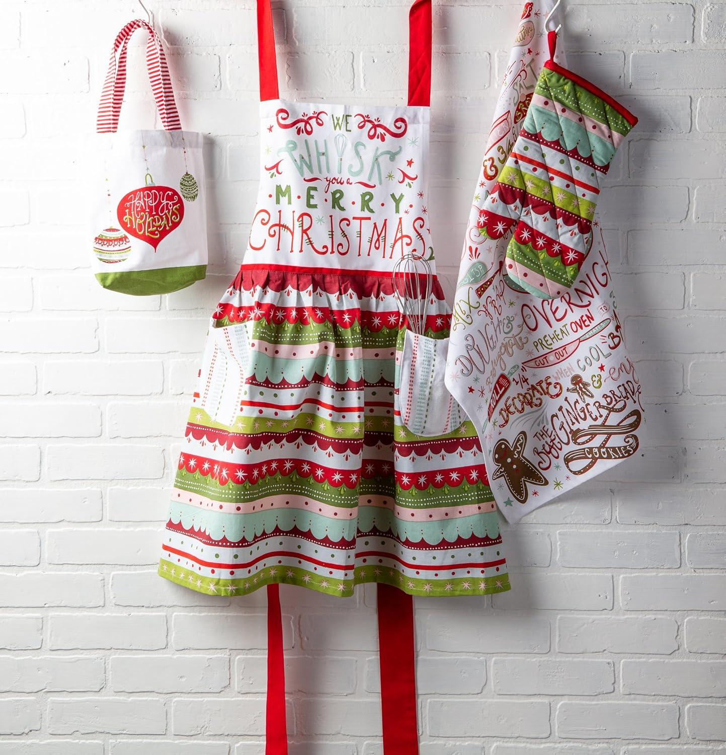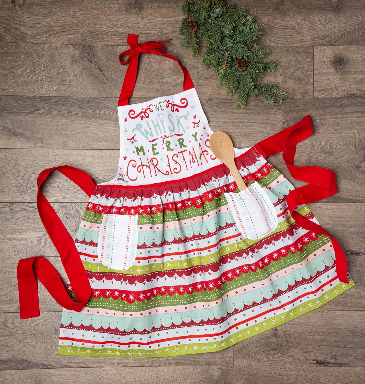 DII Women's Christmas Kitchen Apron Adult Size, Cooking, Baking or Crafting, Adjustable with Large Pockets(Whisk You a Merry Christmas)