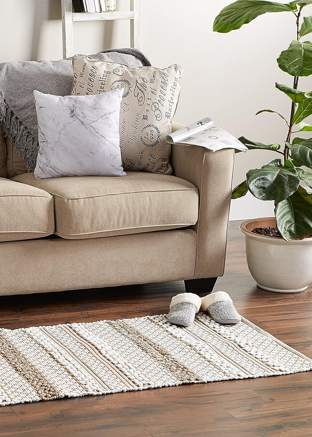 REVERSIBLE CHIC PATTERN: The rug measures 2×3'; Handloomed 43% Cotton 32% Polypropylene 25% Polyester