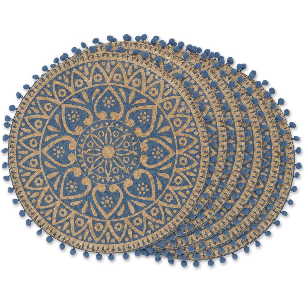 DII Woven Tabletop Collection Natural Jute, Placemat Set, 15" Round, French Blue Block Print, 6 Piece(French Blue Block Print)