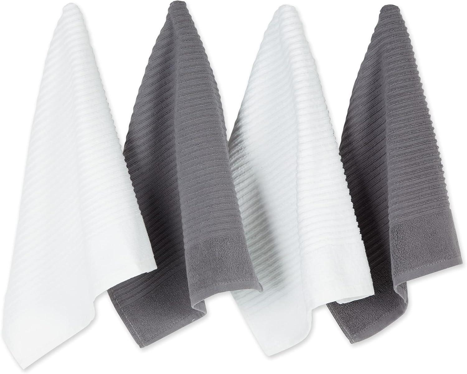 J&M Home Fashions, Cotton Ribbed Terry Dish Towels, Ultra Absorbent, Set of 4. 16x26, Gray/White(Gray)